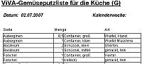 Die Wochenspeisepläne werden auf Papiervordrucke ausgedruckt zum direkten Verteilen